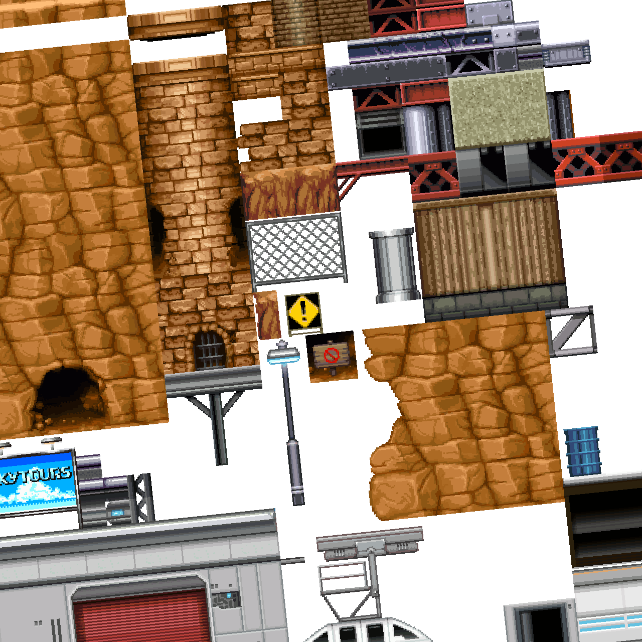 - Range of background and platform tiles, interior and exterior