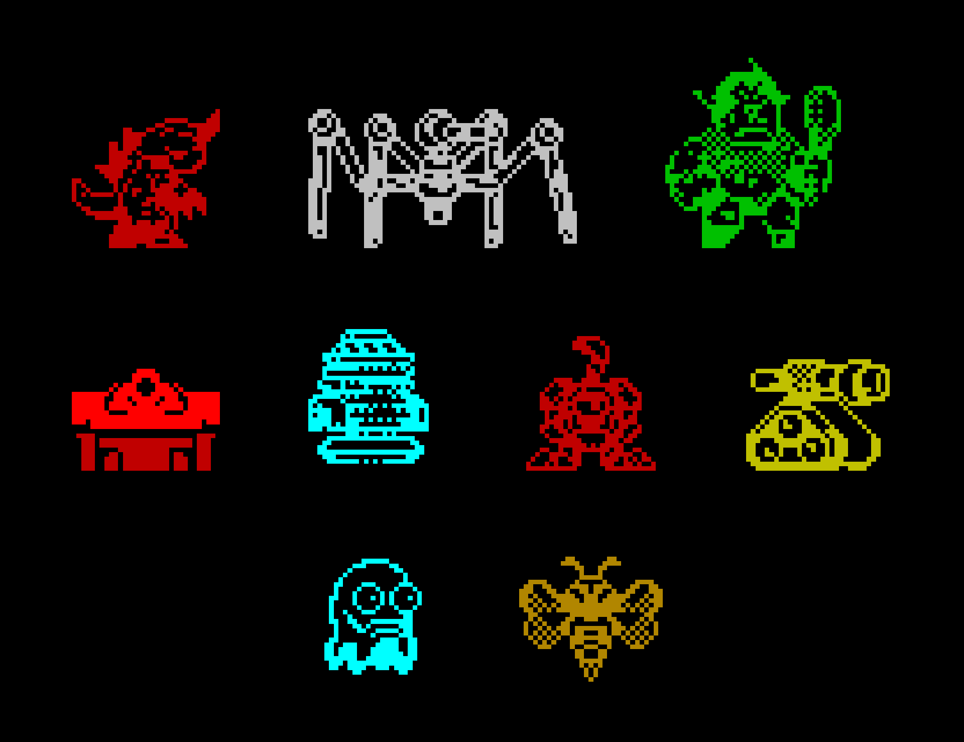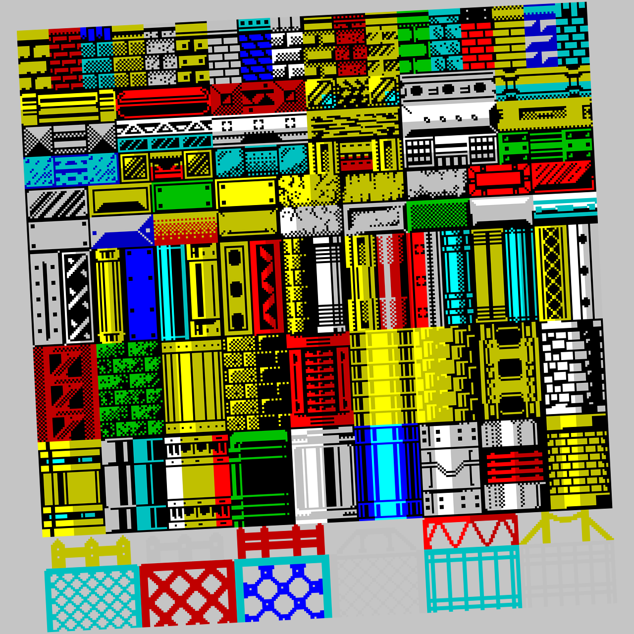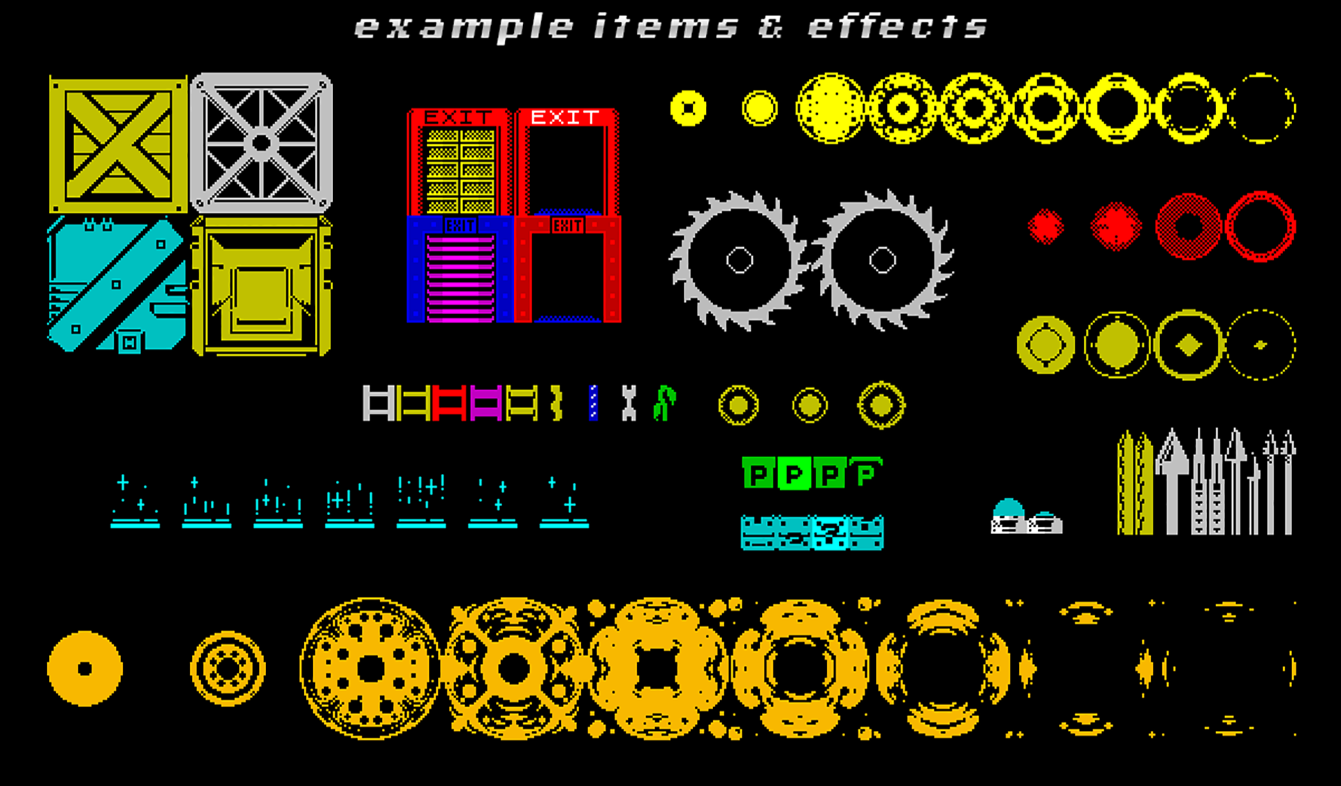 A huge pack of pixel level tiles, objects, enemies and background textures, all created to old school ZX Spectrum colour palette specifications.
